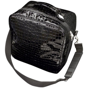 The Ultimate Comact Tool Bag. This compact tool bag is the ultimate storage solution for busy professionals in the beauty industry. With its black, patent leather, crocodile pattern finish, it's both stylish and practical. The large center zippered compartment and fold-out side panel with 3 pouches provide ample space to organize all your necessary tools, while the mesh zippered pouch on the other inside panel allows for even more storage options. Plus, with its removable, adjustable shoulder strap and ID tag, you can take it with you wherever you go.