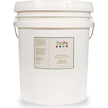 Therapro Deep Tissue Lotion / 5 Gallons. TheraPro Deep Tissue Massage Lotion is a perfectly balanced product that offers the massage therapists glide with enough friction for Deep Tissue massage. This lotion absorbs more rapidly than TheraPro Swedish Massage Lotion and is perfectly suited for deeper modalities. TheraPro Deep Tissue lotion is non-greasy and easily removed from sheets for easy cleanup. It washes completely out of linens leaving no stains or undesirable odors. For an added treat you can add TheraPro essential oil blends for the benefits of aromatherapy. Water dispersible. Available in 8 oz bottle, and 1/2 gal, 1 gal, and 5 gal containers. Please note: Pumps sold separately.