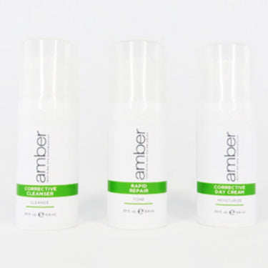 Amber Acne Defense Travel Kit – Professional Acne Solution On the Go. Every professional knows that consistency is the key to clear, healthy skin, and the Amber Acne Defense Travel Kit ensures your clients can stay on top of their skincare routine wherever life takes them. Designed for acne-prone skin, this kit is your compact answer for powerful, effective skincare solutions. The kit includes three essential products: the Corrective Cleanser, Rapid Repair Toner, and Corrective Day Cream, all housed in a convenient plastic zip bag. Each product is packed with potent, professional-grade ingredients to tackle acne at its core, making it perfect for use in professional treatments or retailing to clients seeking an on-the-go solution.