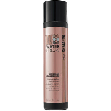Tressa Watercolors Maintenance Shampoo - Cocoa / 8.5 oz. - 250 mL. These sulfate-free, color maintenance and enhancing shampoos cleanse, condition and refresh hair color in one step. Protect your clients color investment and maintain their color between salon visits! A 3-in-1, sulfate-free shampoo for everyone with colored hair, Watercolors Shampoos cleanse, condition and refresh color in one easy step. Specially formulated Reflective Color Enhancers deposit color and deliver vibrant tones and brilliant shine, while a rich foaming lather nourishes every hair strand. Tone and maintain color treated hair, or enhance non-treated hair's natural hues. Watercolors is the ultimate color enhancing, conditioning shampoo.