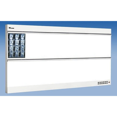 Trimline III Illuminator / 6 over 6 (3 Bulb) by Wolf X-Ray. The Trimline III Illuminator 6 over 6 features six viewing boxes on top of six viewing boxes. Each viewing area has 3 bulbs (4,000 Candela per square meter of illumination) per 14" by 17" viewing area. Total viewing area is 34" x 84."