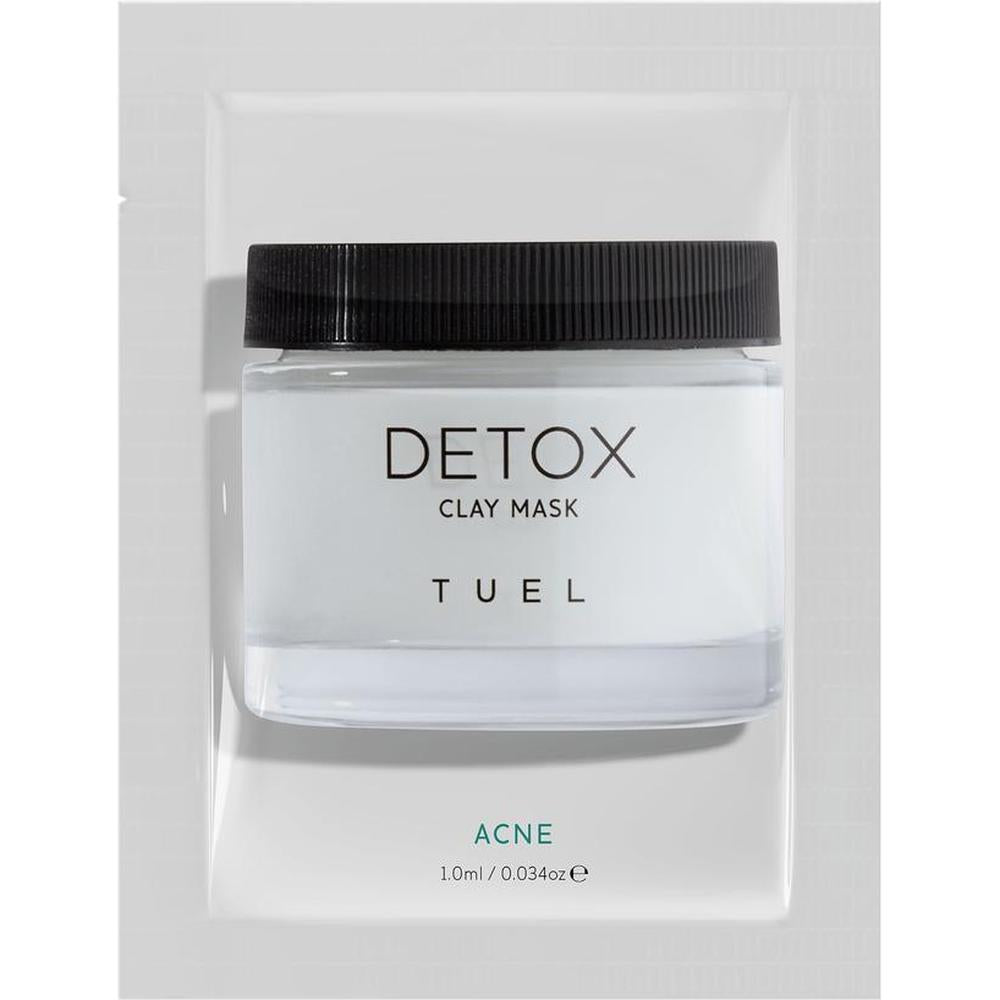 Tuel Detox Clay Mask Sample – Acne Fighting Power in a Jar. Purge your pores and give your skin the detox it deserves. Designed specifically for acne-prone skin, the Tuel Detox Clay Mask Sample combines the power of kaolin clay, sulfur, zinc oxide, aloe, and vitamin E to provide a comprehensive solution to breakouts. This mineral-rich formula doesn't just address surface blemishes—it targets underlying causes, helping professionals offer clients a truly effective treatment they can use at home.