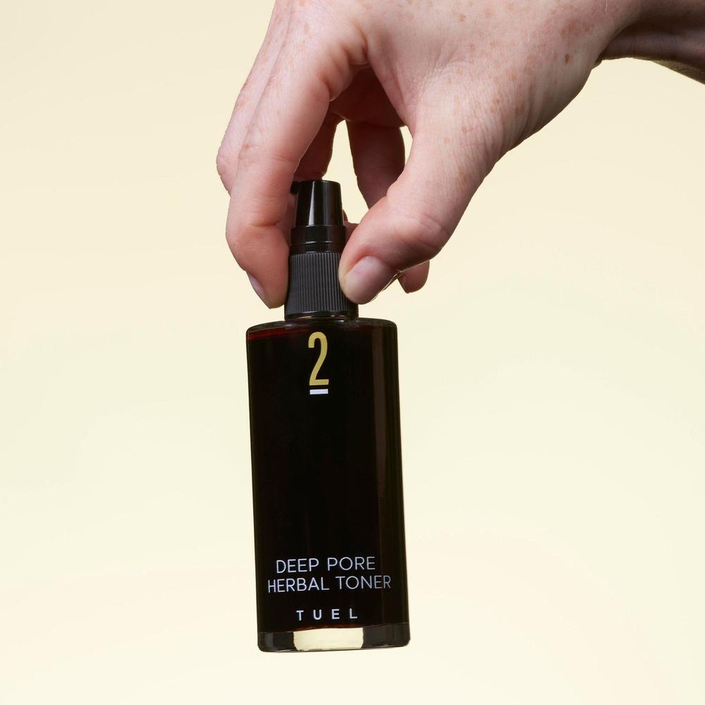 - Follow with the Herbal Toner. Combine a few drops with the oil and rinse thoroughly for clean, refreshed skin.