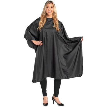 Ultra Chic Haircutting Cape - Onyx Rain Pattern / 54" x 58". This cape is rich in style and color, created to give any salon a first-class look. The water resistant material is made of a nylon/polyester boasting a beautiful textured pattern. It's a perfect choice for styling and cutting. One size fits most. Machine washable. Snap closure for the neck. Measures 54" x 58". Onyx rain pattern.