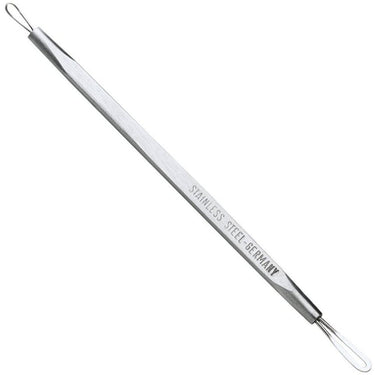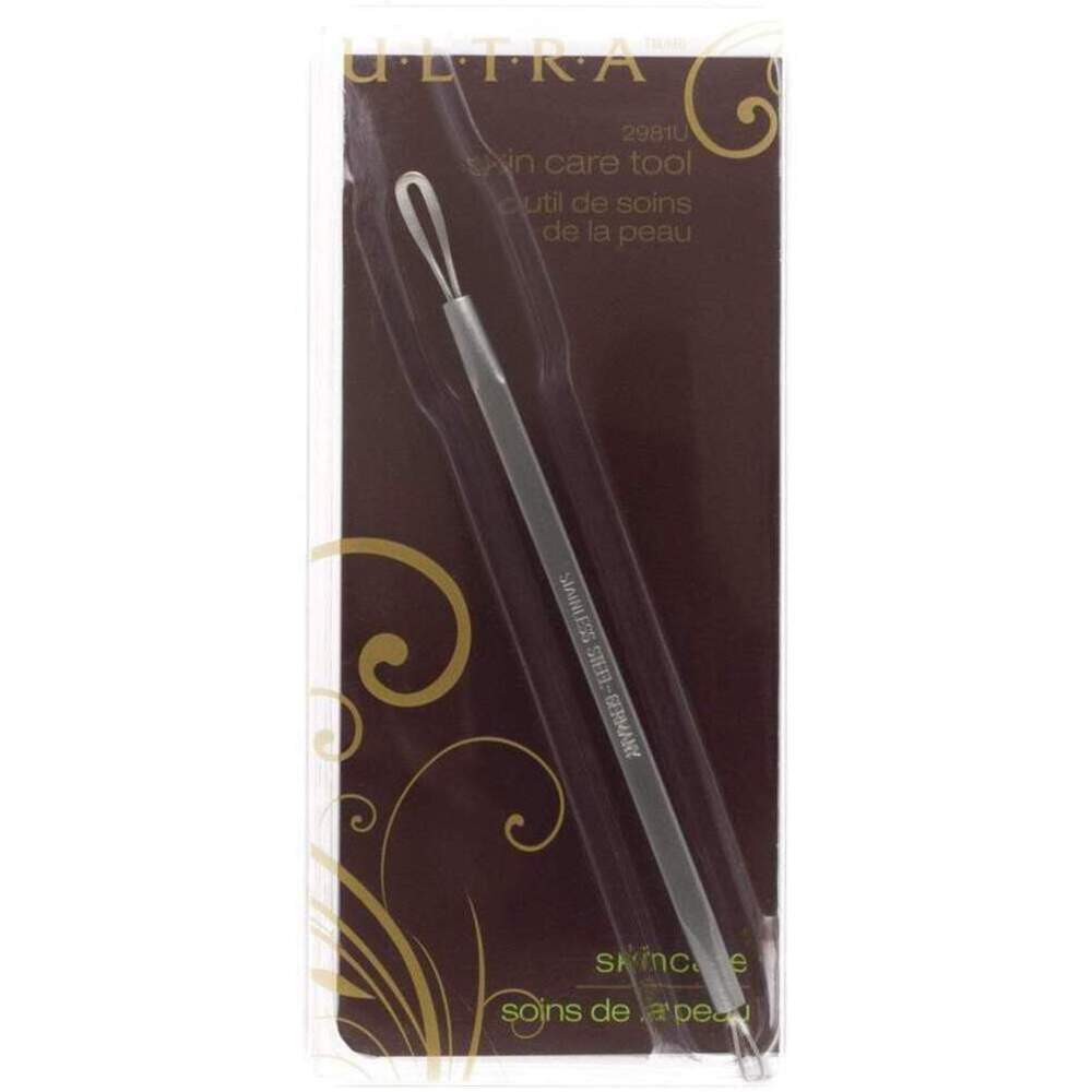 Ultra Skin Care Tool - Stainless Steel / 5" L. Get ready for any extraction service or treatment with the Ultra™ Skin Care Tool. Features a thin loop for gently rolling out whiteheads and a flat side for pressing out blackheads. Made in Germany. Stainless steel. 5" L