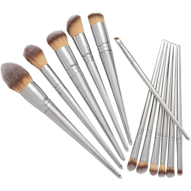 Ultra-Soft Synthetic Brush Set / 12 Pieces. Hello there, beauty professionals! Are you looking for a high-quality brush set that will give your clients the ultimate pampering experience? Look no further than our Ultra-Soft Synthetic Brush Set! This 12-piece set is perfect for achieving a flawless finish with every application. Each brush has been carefully crafted with soft, synthetic bristles that are gentle on even the most sensitive skin. The chrome ferules and silver handles add a touch of elegance to your beauty routine, while the included metallic silver case makes it easy to keep your brushes organized and protected.
