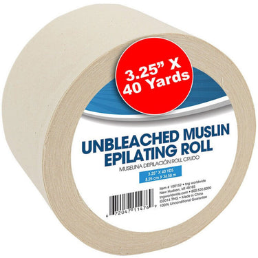 Unbleached Natural Muslin Roll / 3.25" x 40 Yards. Unbleached Natural Muslin features fine grade extra thick muslin fabric to easily remove wax from skin. 3.25" x 40 Yards.