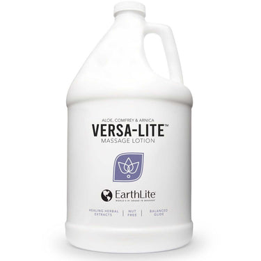 Versa-Lite™ Massage Lotion / 1 Gallon / Unscented. Introducing Earthlite's Versa-Lite™ Massage Lotion - a light and smooth lotion that offers the perfect balance of glide and friction for an optimal massage experience. Our expertly formulated lotion absorbs easily into the skin, leaving your clients feeling nourished without any greasy residue.