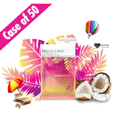 Voesh Deluxe Pedicure in a Box - 4-Step Hygienic Spa Pedicure Kit - Coco Colada Oasis / Case of 50 Treatment Sets by Voesh of New York