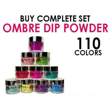 WAVE DIP - Ombre Dip Powder 2 oz - Complete Set - 110 Colors (#001-#122) by WaveGel by WaveGel. Wave Gel Ombre Dip Powders are a 2 in 1 System. They can also be applied with an EMA Acrylic Liquid Monomer. Combine with another Wave Gel Dip Powder to create an ombre effect! Contains:Wave Ombre Dip Powder - 110 Colors (One of each - #001-#122)