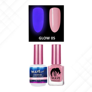 Wave Glow 2-In-1 Matching Duo Set / 1 Gel Polish 0.5 oz. + 1 Lacquer 0.5 oz. / #05 by WaveGel. Featuring the latest gel and lacquer formulas, Wave Glow Gel glows inthe dark and is the premier professionals choice for Gel Polish and Nail Lacquer. All Wave Gel Colors come with a companion nail lacquer.