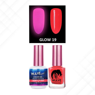 Wave Glow 2-In-1 Matching Duo Set / 1 Gel Polish 0.5 oz. + 1 Lacquer 0.5 oz. / #19 by WaveGel. Featuring the latest gel and lacquer formulas, Wave Glow Gel glows inthe dark and is the premier professionals choice for Gel Polish and Nail Lacquer. All Wave Gel Colors come with a companion nail lacquer.