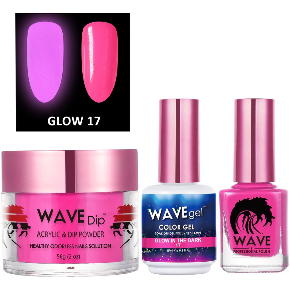 Wave Glow 3-In-1 Matching Combo Set / 1 Gel Polish 0.5 oz. + 1 Lacquer 0.5 oz. + 1 Dip Powder 2 oz. / #17 by WaveGel. Wavegel Combo Set including: 1 Gel Lacquer + 1 Lacquer .5oz + 1 Dip Powder 2oz Featuring the latest gel and lacquer formulas, Wave Gel is the premier professionals choice for Gel Polish and Nail Lacquer. All Wave Gel Colors come with a companion nail lacquer.