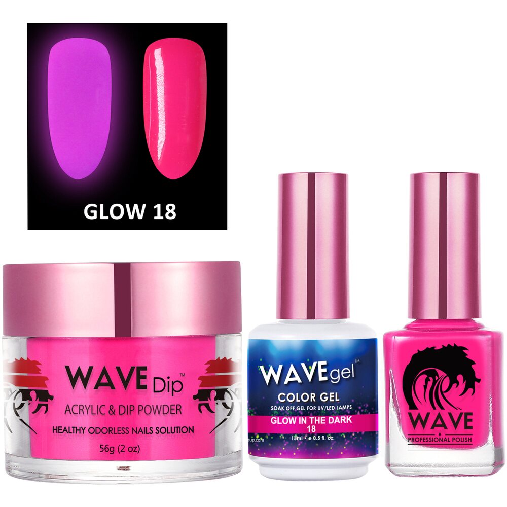 Wave Glow 3-In-1 Matching Combo Set / 1 Gel Polish 0.5 oz. + 1 Lacquer 0.5 oz. + 1 Dip Powder 2 oz. / #18 by WaveGel. Wavegel Combo Set including: 1 Gel Lacquer + 1 Lacquer .5oz + 1 Dip Powder 2oz Featuring the latest gel and lacquer formulas, Wave Gel is the premier professionals choice for Gel Polish and Nail Lacquer. All Wave Gel Colors come with a companion nail lacquer.