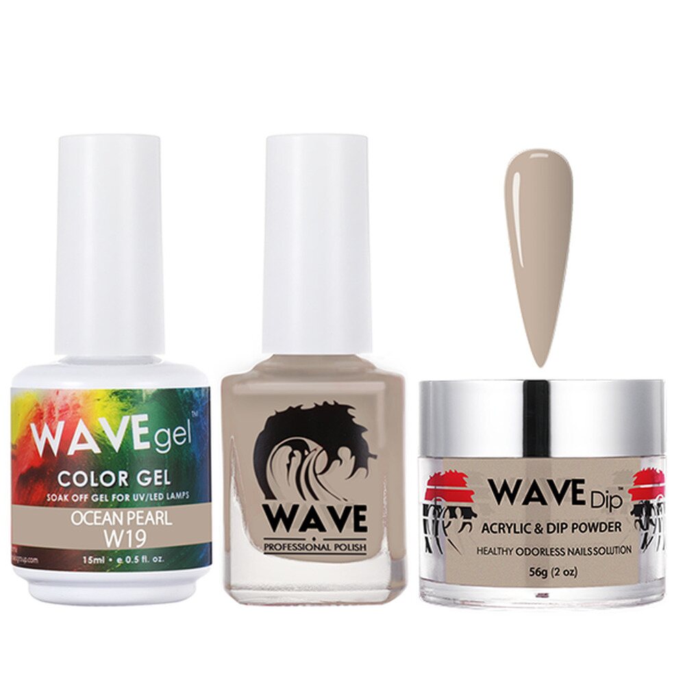 Wave Simplicity 3-In-1 Matching Combo Set / 1 Gel Polish 0.6 oz. + 1 Lacquer 0.5 oz. + 1 Dip Powder 2 oz. / #019 Ocean Pearl - 22700 by WaveGel. Wave Simplicity 3-in-1 Matching Combo Set / 1 Gel Polish 0.6 oz. + 1 Lacquer 0.5 oz. + 1 Dip Powder 2 oz.