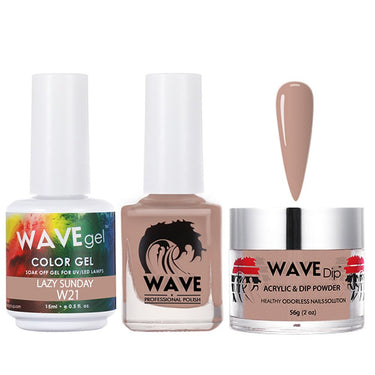 Wave Simplicity 3-In-1 Matching Combo Set / 1 Gel Polish 0.6 oz. + 1 Lacquer 0.5 oz. + 1 Dip Powder 2 oz. / #021 Lazy Sunday - 22700 by WaveGel. Wave Simplicity 3-in-1 Matching Combo Set / 1 Gel Polish 0.6 oz. + 1 Lacquer 0.5 oz. + 1 Dip Powder 2 oz.