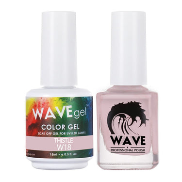 Wave Simplicity Collection 2-In-1 Matching Duo Set / 1 Gel Polish 0.5 oz. + 1 Lacquer 0.5 oz. / #P018 Thistle by WaveGel. Wave Simplicity Collection 2-In-1 Matching Duo Set / 1 Gel Polish 0.5 oz. + 1 Lacquer 0.5 oz. / #P018 Thistle. Featuring the latest gel and lacquer formulas, Wave Glow Gel glows inthe dark and is the premier professionals choice for Gel Polish and Nail Lacquer. All Wave Gel Colors come with a companion nail lacquer.