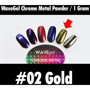WaveGel Chrome Metal Powder - #02 Gold / 1 Gram by WaveGel. WaveGel CHROME METAL is the New Product formulated from the Germany technology & packaged in the USA. This product shows an exciting chrome effect & also 3D design where the light comes to you. The high standard level of quality.