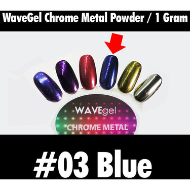 WaveGel Chrome Metal Powder - #03 Blue / 1 Gram by WaveGel. WaveGel CHROME METAL is the New Product formulated from the Germany technology & packaged in the USA. This product shows an exciting chrome effect & also 3D design where the light comes to you. The high standard level of quality.