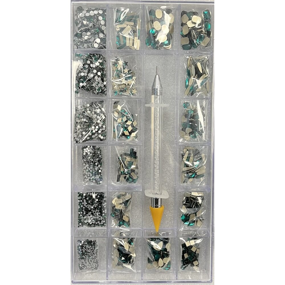 Wavegel Rhinestone Kit Box Green by WaveGel. Multi shapes Fancy Rhinestones Material: High-quality K9 Glass Multi different shapes Professional Rhinestones Picker Type: Flatback Rhinestones (glue is needed, not included in the package).