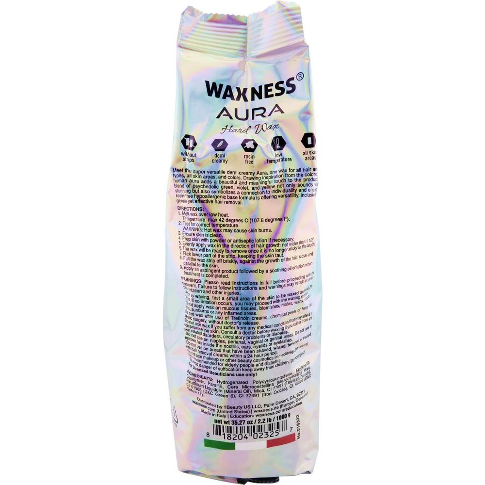 Aura Rosin-Free Hard Wax – A Spectrum of Comfort and Performance. Crafted for modern estheticians who want both flexibility and finesse, Waxness Aura Hard Wax delivers elevated performance across all skin types and waxing zones. With a luminous finish that mimics the iridescence of the human aura, this premium wax combines the best features of creamy and gel formulas into one luxurious, demi-creamy blend. Its rosin-free, hypoallergenic composition ensures gentle care for sensitive clients, while its performance delivers results that professionals can count on, treatment after treatment.