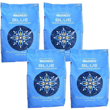 Waxness Hard Wax Beads Blue Professional Original - Made in Italy / 2.2 lbs. - 35.27 oz. - 1 kg. Each X 4 Bags = 8.8 Lbs. Waxness Blue is a professional-grade formula, hybrid resin wax from Europe. It is characterized by high flexibility and plasticity, a strong grip on the hair, and very low adhesion on the skin.