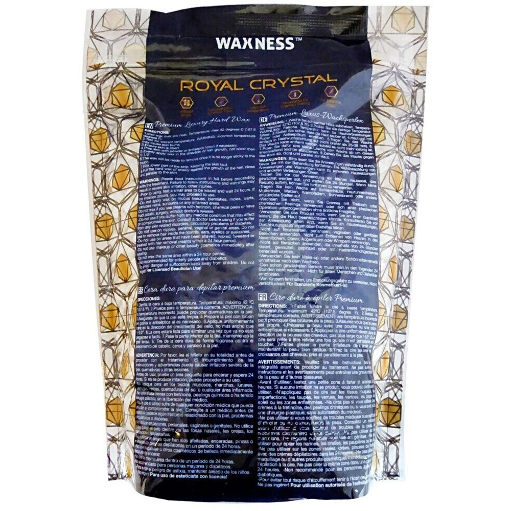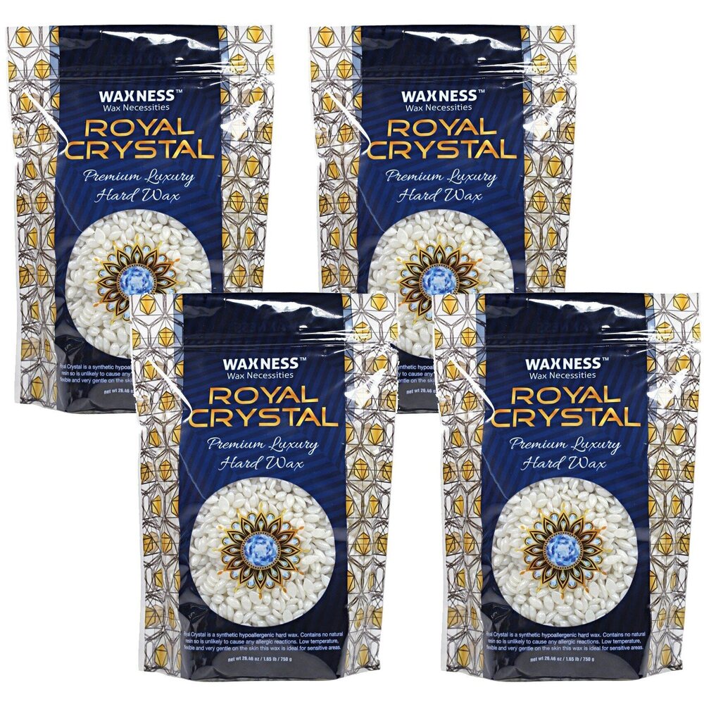 Waxness Royal Crystal Premium Luxury Hard Wax Beads - Made in Italy / 1.65 lbs. - 26.25 oz. X 4 Bags = 6.6 lbs. Waxness Royal Crystal is a Premium Luxury Depilatory Hard Wax made from the highest quality hypoallergenic resin with our unique blend of ingredients that work to create a flexible, yet strong wax.