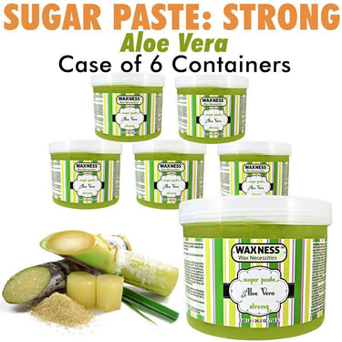 Waxness Strong Sugar Paste - Aloe Vera / Case = 1.65 lb. - 750 gram Container X 6 Containers. Waxness Sugar Paste Strong with Aloe Vera has a dense consistency and is suitable only for manual techniques. It is 99.9% natural and contains natural soothing Aloe Vera extract.