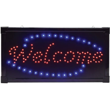 The "Welcome" LED Sign / 10"H x 19"W x 3/4"D. Multi-colored animated, indoor, LED sign will grab clients' attention and increase traffic to salons, spas, and barbershops. Readytohang with 2 metal hang loops and chain. 4.5 foot cord. 10"H x 19"W x 3/4"D.
