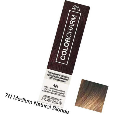 Wella Color Charm Demi-Permanent Haircolor - 7N (7/0) Medium Natural Blonde / 2 oz. Our 21 NEW Wella colorcharm Demi-Permanent shades offer shiny, healthy-looking color with less damage*. With a wide palette of Blonde, Red, Violet and deep Brunette shades, we have every color needed to create the look you desire. Love your current color but want to make it shine? Our Clear shade adds eye-catching gloss to any color. *vs. permanent color