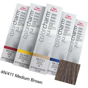 Wella Color Charm Permanent Gel Haircolor - 4N/411 Medium Brown / 2 oz. Color Charm is the haircolor that makes sense. It is easy to understand and formulate. Wella Color Charm Permanent Gel Haircolor provides the speed of liquid, conditioning and convenience of cream. Vibrant, long lasting, fade resistant results with Gelfuse™ Technology that saturates, penetrates and fuses with the hair to deliver vibrant color that is exceptionally fade resistant. Excellent gray coverage that covers the most resistant grays. Very predictable, the color you want is always the color you get. Versatility of use - bowl and brush or bottle and a translucent mixture for better control.