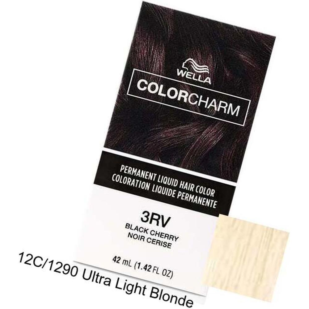 Wella Color Charm Permanent Liquid Haircolor - 12C/1290 Ultra Light Blonde / 1.4 oz. Wella colorcharm Permanent Liquid Color saturates and fuses with the hair to deliver a TRUE-TO-TONE color that is exceptionally fade resistant. Liquid Color provides a vibrant palette without boundaries with 62 easily intermixable shades to express your creativity.