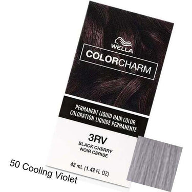 Wella Color Charm Permanent Liquid Haircolor - 50 Cooling Violet / 1.4 oz. Wella colorcharm Permanent Liquid Color saturates and fuses with the hair to deliver a TRUE-TO-TONE color that is exceptionally fade resistant. Liquid Color provides a vibrant palette without boundaries with 62 easily intermixable shades to express your creativity.