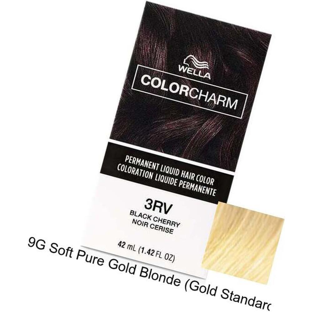 Wella Color Charm Permanent Liquid Haircolor - 9G Soft Pure Gold Blonde (Gold Standards) / 1.4 oz. Wella colorcharm Permanent Liquid Color saturates and fuses with the hair to deliver a TRUE-TO-TONE color that is exceptionally fade resistant. Liquid Color provides a vibrant palette without boundaries with 62 easily intermixable shades to express your creativity.