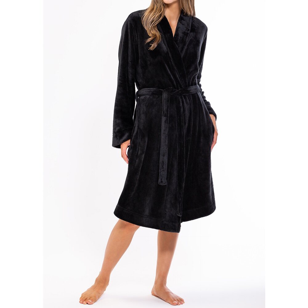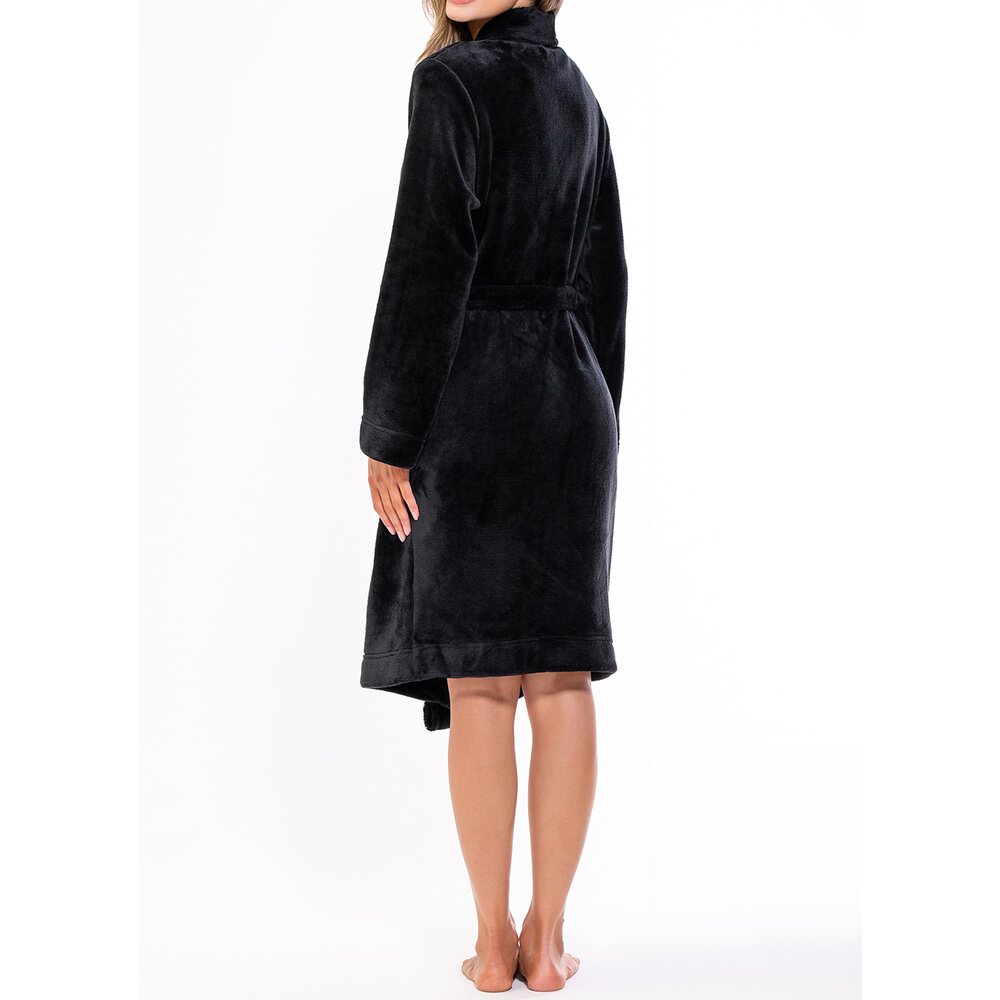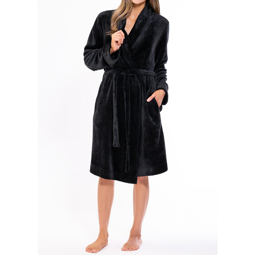 Woman's Super Soft Lightweight Plush Shawl Robe | Short Length | Material: 100% Polyester Warm Fleece | Color: Black | Available Sizes: S, M, L, XL, XXL. Your bathroom or spa isnt complete with a warm plush robe, and weve got just the thing for the comfort you crave. Feel like a princess day or night when you put on our luxurious soft robe and let its silky feeling envelope you. Ideal after a shower, a dip in the pool, or after a spa treatment, its royal luxury you deserve. The plush fabric feels great on your skin, while the comfortable design keeps you cozy warm.